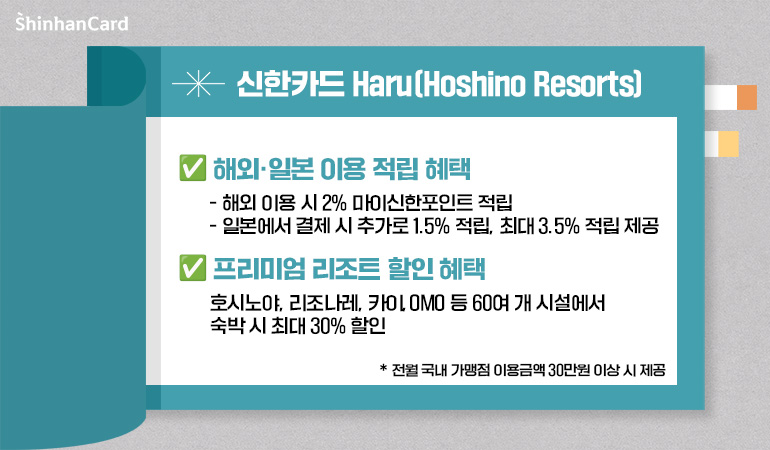 • 신한카드 Haru (Hoshino Resorts) 국내(Local), 해외(URS) 30,000원