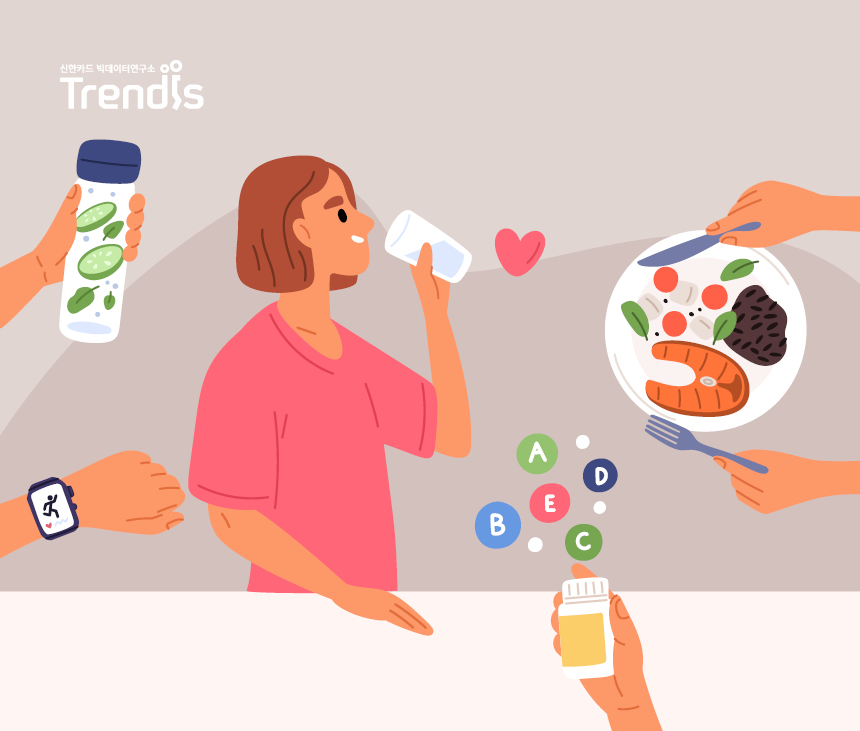 약 117%나 상승했습니다. ‘자기관리’와 함께 언급되는 단어를 살펴보면 특히 건강 전반에 대한 내용과 함께 스트레스 관리에 대한 관심이 두드러졌고요. 그 외 피부·두피관리, 식단·체형 관리 등 세심하고 디테일하게 자신을 케어하는 모습이 나타나고 있습니다. 그렇다면 영역별로는 어떤 변화의 흐름이 나타나는지 자세히 알아볼까요.