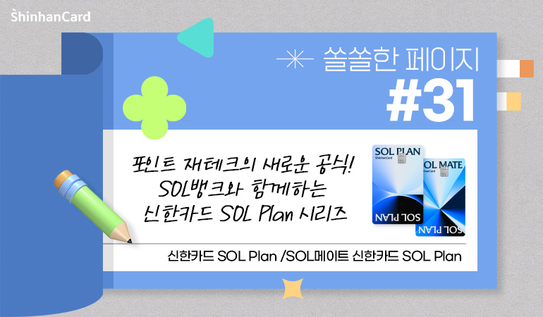 이제는 포인트도 플랜이 필요할 때! 생활 곳곳에서 포인트를 착착 모아주는 두 가지 카드, 신한카드 SOL Plan과 SOL메이트 신한카드 SOL Plan을 소개합니다.