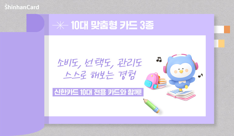 신한카드에는 10대를 위한 카드가 준비되어 있다는 사실! 지금부터, 청소년 시기에 처음 쓰기 좋은 카드 3종을 알려드릴게요.