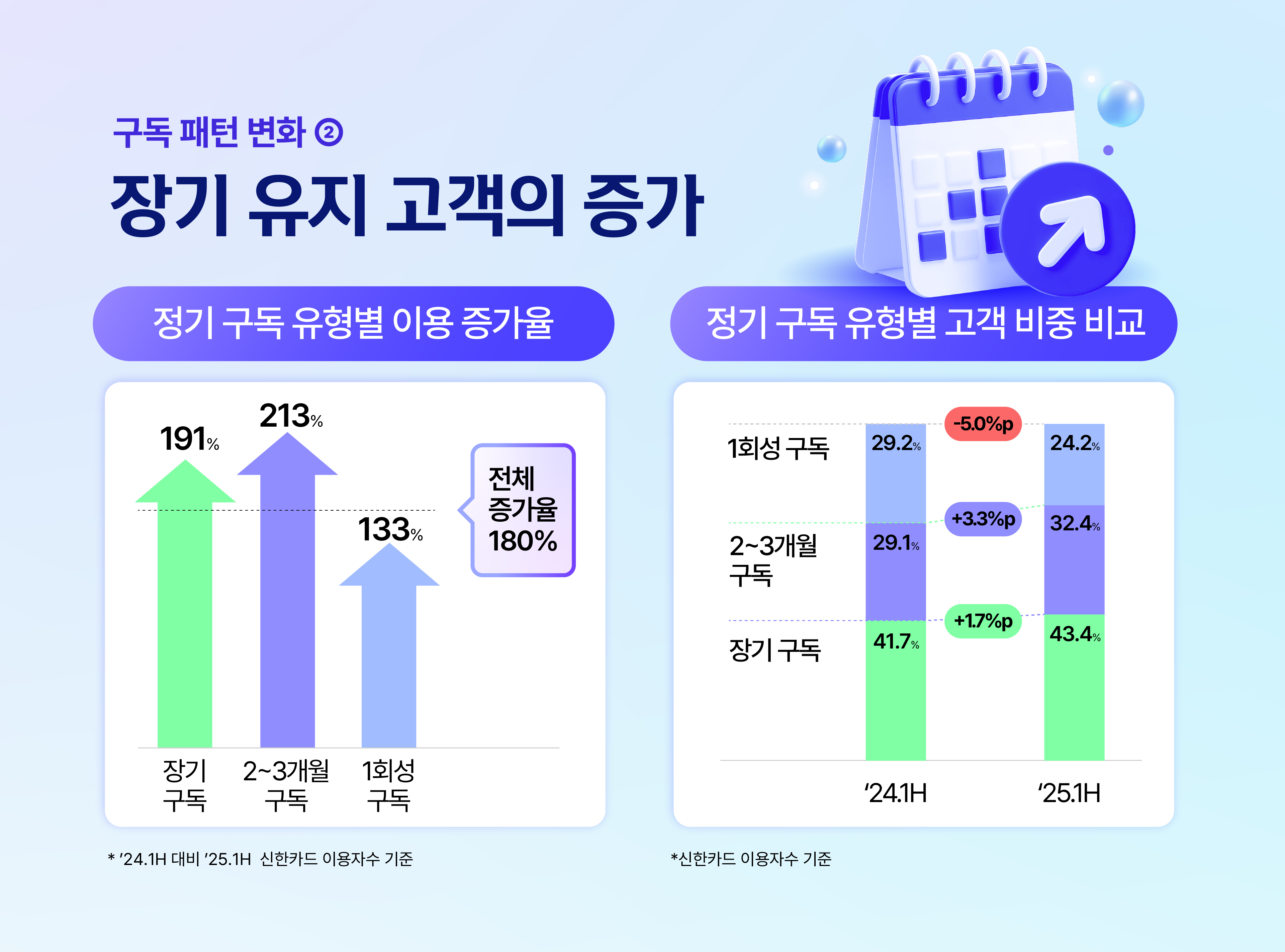 또 하나 주목할 점은 구독의 ‘지속성’입니다. 전체 구독자 중 1회성으로 그치는 비중은 줄어든 반면, 2개월 이상 연속 구독을 이어가는 고객은 꾸준히 늘고 있죠. 특히 반기 내 4개월 이상 유지한 장기 구독자의 증가율은 전년 대비 191%에 달해, 단발성 구독자보다 훨씬 가파른 성장세를 보였습니다. 단순한 AI 체험을 넘어, 생활 속에서 안정적으로 자리 잡는 구독 문화가 형성되고 있는 셈입니다.