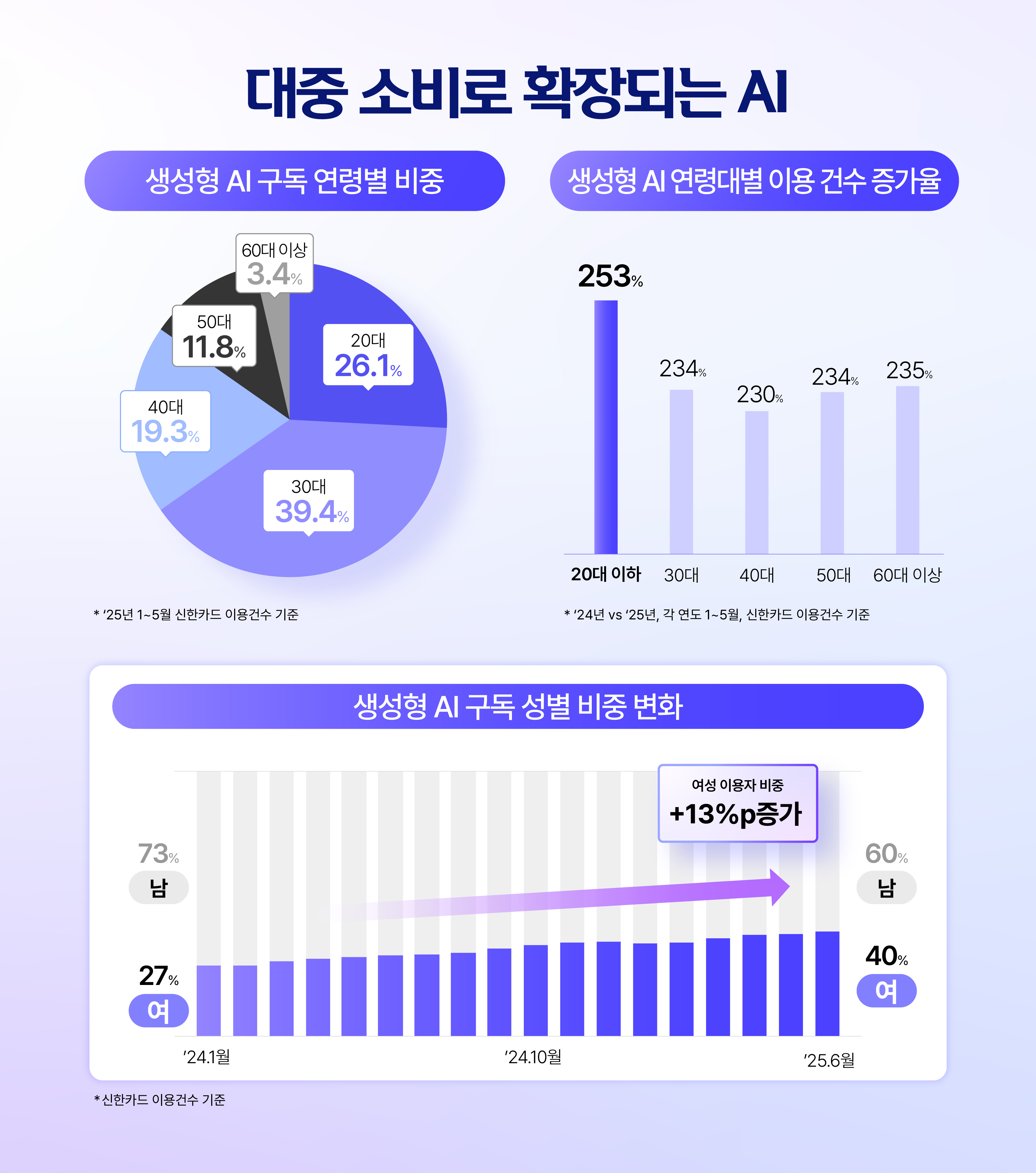 요즘 다들 하나쯤은 구독하고 있는 새로운 일상 필수템, 바로 생성형 AI죠. 과제와 업무는 물론, 일상의 대화까지 이제 AI 없는 삶은 상상하기 힘들어졌습니다. 챗GPT 유료 구독이 시작된 지 벌써 3년, 신한카드 빅데이터연구소가 생성형 AI의 정기 구독 트렌드를 살펴보았습니다.