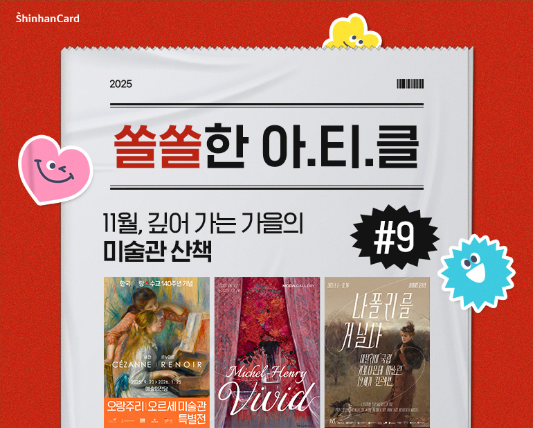 #신한카드 #쏠쏠한아티클 #오랑주리오르세미술관특별전세잔르누아르 #오랑주리오르세미술관특별전 #미셸앙리VIVID #미셸앙리 #나폴리를거닐다이탈리아국립카포디몬테미술관19세기컬렉션 #나폴리를거닐다 #11월전시 #11월전시추천
