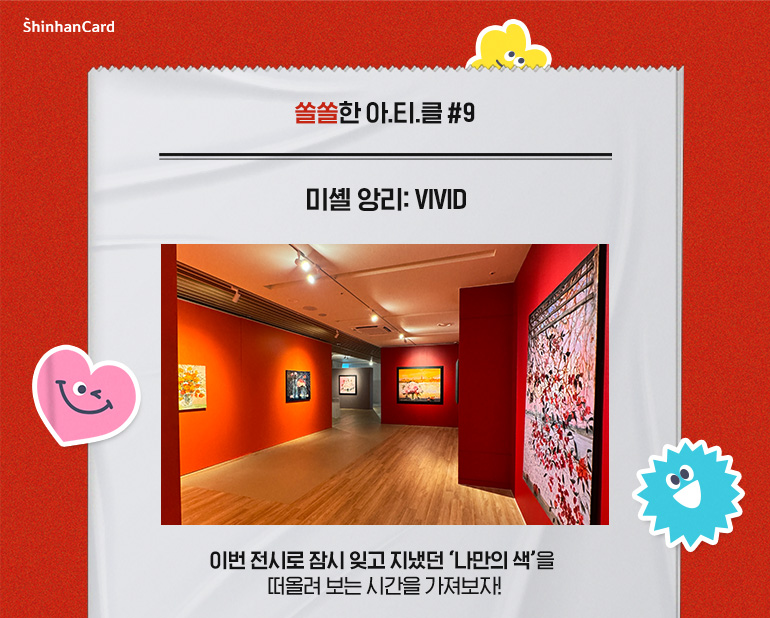 언제 어느 때 방문해도 미술관은 우리에게 빛과 생명을 불어넣는 공간이 되어줍니다. 작품 앞에서 잠시 멈춰 설 때 색과 빛이 전하는 따뜻한 온기가 마음을 채워주죠. 이번 11월, 신한카드가 추천하는 전시들과 함께 아름다운 계절 가을을 온전히 느껴 보시길 바랍니다.