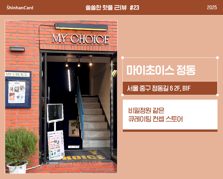 정동길 카페거리를 따라 쭉 산책하면 프루스트의 비밀정원처럼 만날 수 있는 카페가 있습니다. 정동길의 ‘컨셉 스토어’ 마이초이스 정동인데요. 바야흐로 큐레이팅의 시대, 지하엔 식물을 비롯한 가드닝 상품이, 위층엔 책과 소품이 카페와 함께 자리를 지키고 있는 이곳은 타인의 취향을 엿보기에도, 그곳에서 나만의 영감을 찾기에도 제격인 곳입니다.