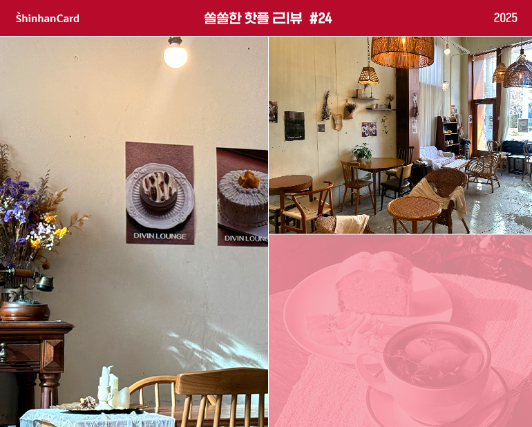 문래동에서 이 카페를 알고 있다면 자부심을 가져도 좋을 만한 ‘디빈라운지’입니다. 충분히 오래 고민할 가치가 있는 다양한 메뉴들로 가득한 곳인데요. 어떤 메뉴를 골라도 성공적인 맛을 선물해 준다는 점에서 여러 번 방문하기 좋은 카페입니다. 그래서인지 한 번의 방문으로 끝나기보다는, 계절이 바뀔 때마다 자연스럽게 다시 찾게 되는 공간이기도 합니다. 특히 연말이 가까워질수록, 이곳의 메뉴와 분위기는 겨울의 공기와 더욱 잘 어울립니다.