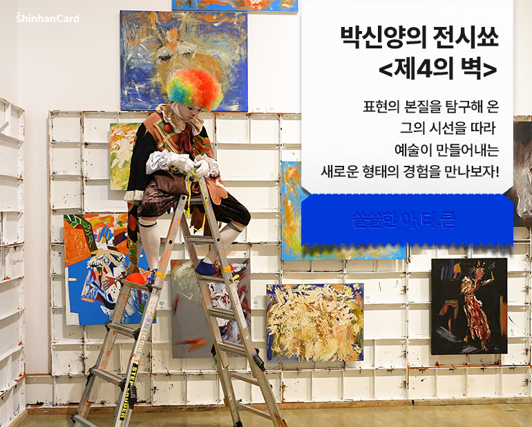 이번 전시는 약 200점 규모의 회화 작품과 함께 공간 연출, 퍼포먼스 요소를 결합해 전시장 전체를 하나의 이야기 구조로 구성합니다. 관람객은 마치 화가의 작업실 안으로 들어온 듯한 공간 속에서 작품과 마주하게 되는데요. 물감과 이젤, 팔레트 같은 작업실의 요소들이 살아 움직이는 듯한 연출 속에서 그림과 공간, 그리고 관람 경험이 하나의 무대로 이어집니다. 연극에서 배우와 관객 사이를 가르는 보이지 않는 경계를 의미하는 제4의 벽 처럼 이 전시는 회와의 무대, 감상과 참여 사이의 경계를 조금씩 허물어 갑니다. 배우이자 화가로서 표현의 본질을 탐구해 온 박신양의 시선을 따라 예술이 만들어내는 새로운 형태의 경험을 만나보세요!